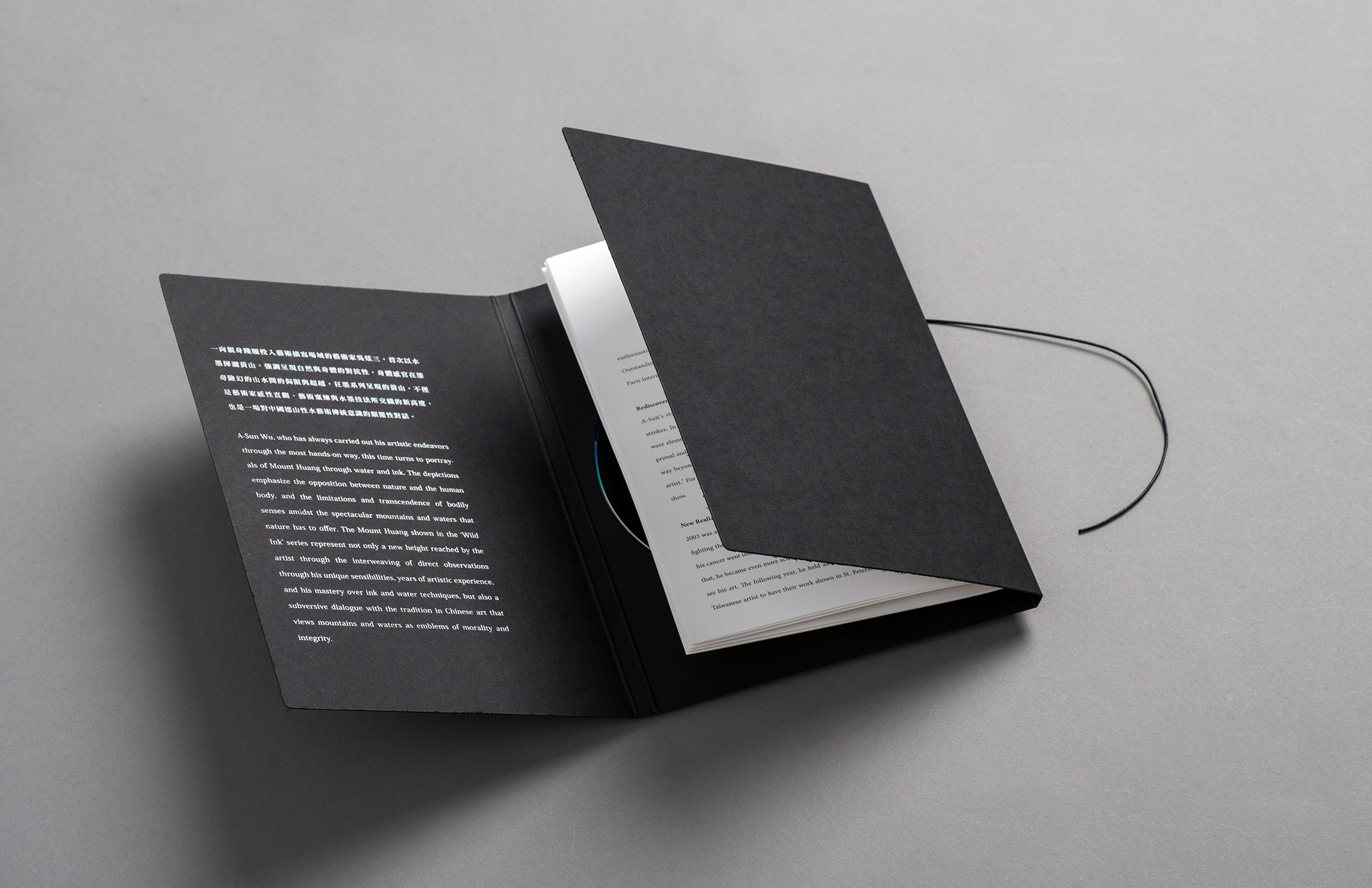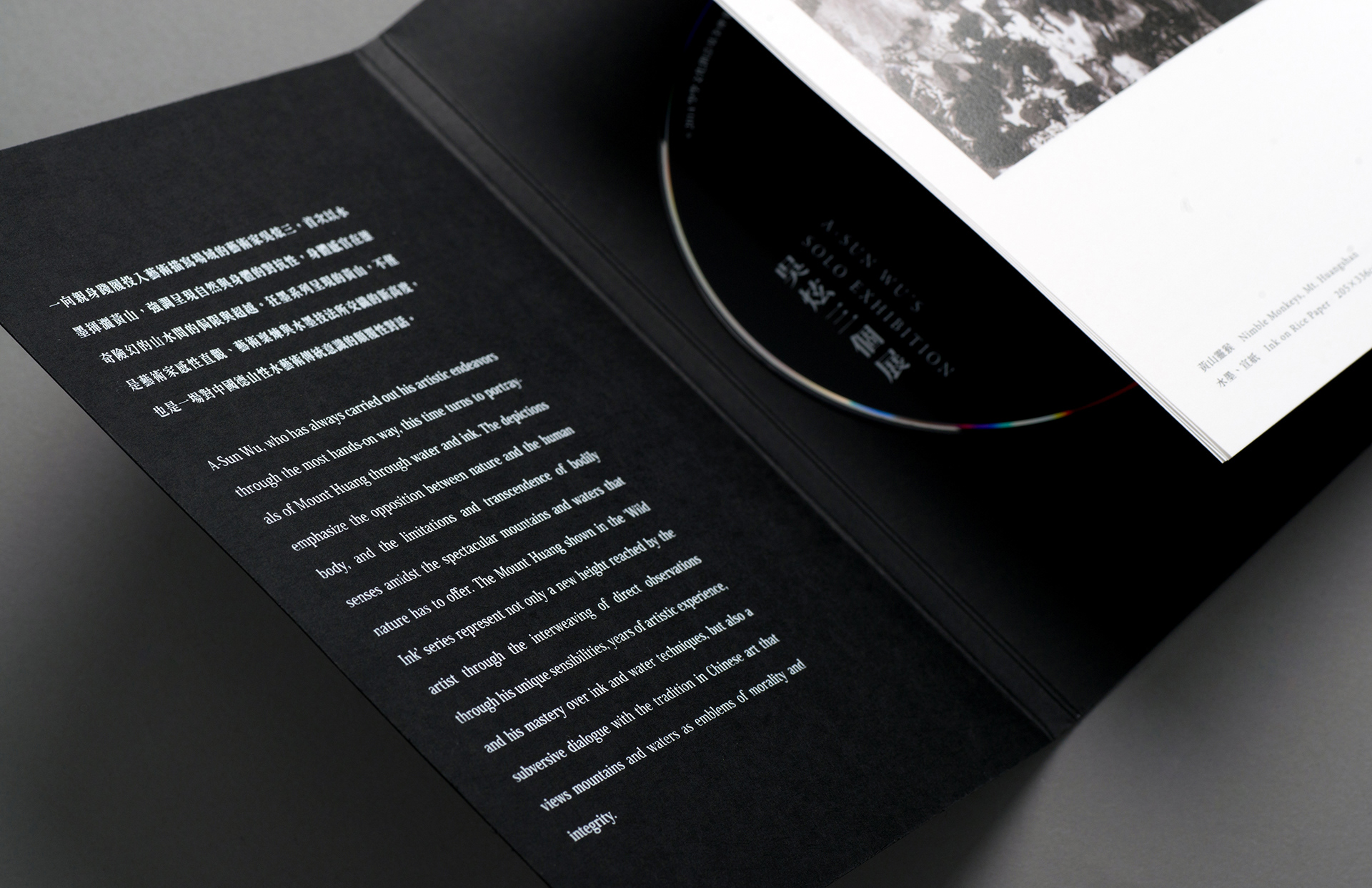 吳炫三以水墨揮灑黃山,展出身體感官在雄奇幻險的山水間之侷限與超越,展覽視覺以黑與白出發,呼應場域中的水墨黑白。該展將作品介紹收納於光碟片件取代畫冊印製,以黑色厚卡、燙白文字、黑色皮繩作為包裝紙夾的元素,現示出當代水墨的氣勢。